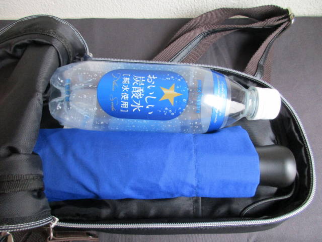 一番下の層も、ジッパーが大きく開きます。500mlのペットボトルと、折り畳み傘が余裕で入る大きさ。