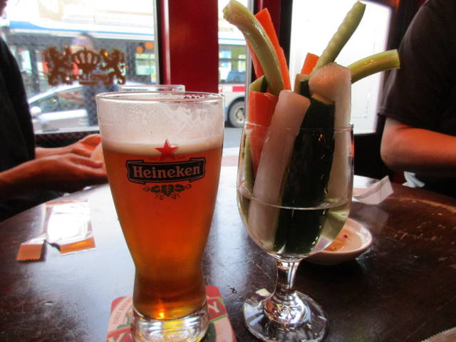 それを飲まない手はない!ってことで、バスペール→バスペール→ハイネケン→キルケニー→キルケニー→ギネス→ギネスと7杯飲んじゃいました。v(⌒o⌒)v