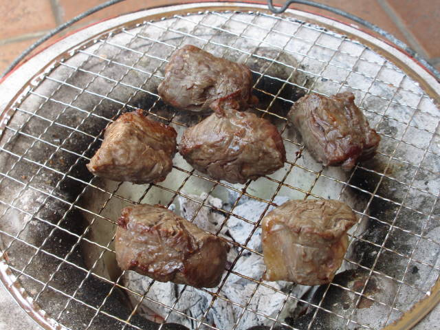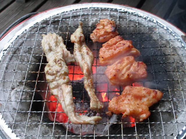 昨日食べきれなかった肉を、今日も七輪で焼いて食べました。