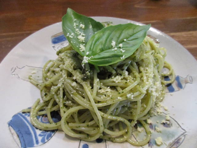 カミさん手作りの、ジェノヴァソースを使ったパスタ。