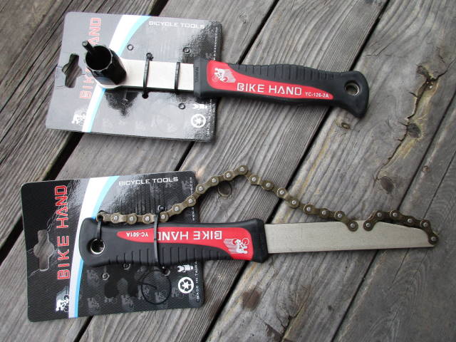 チェーンが付いている方は、取り外す時にスプロケットの空転を防ぐ工具。