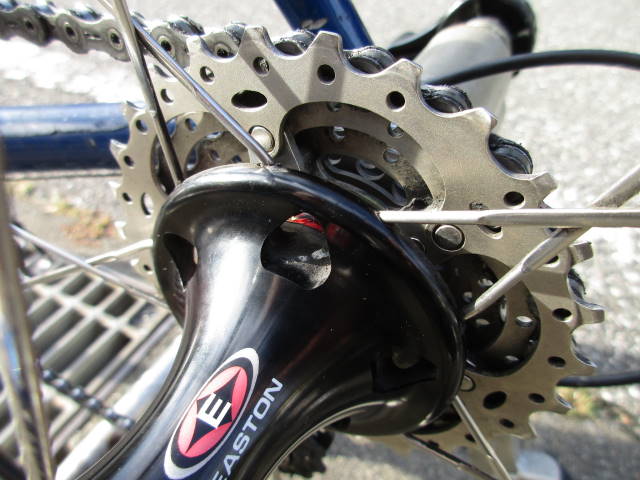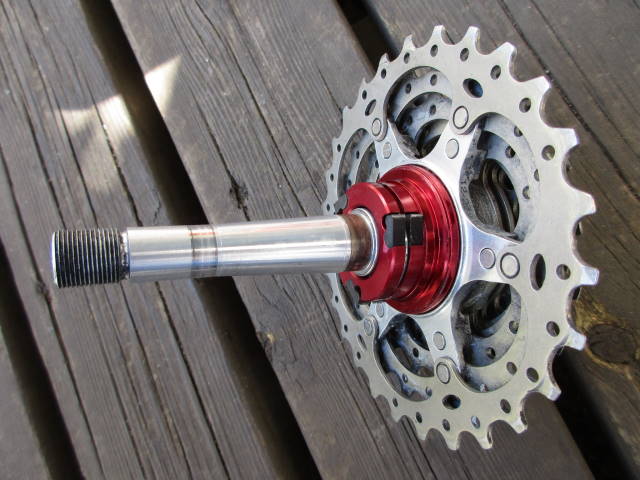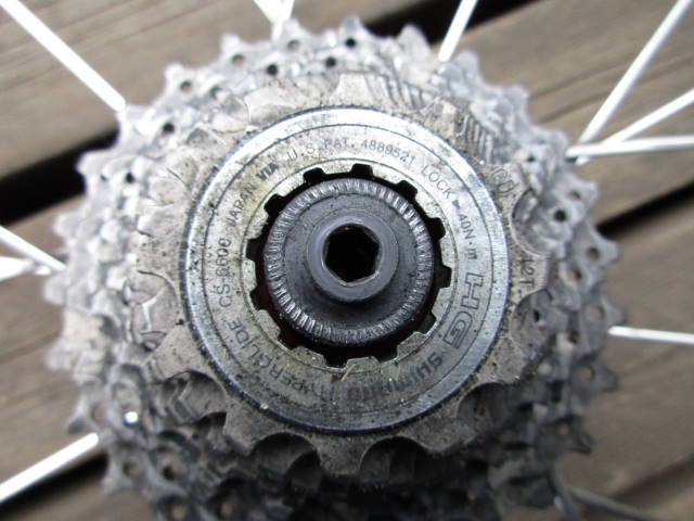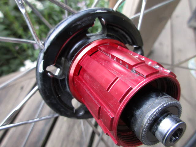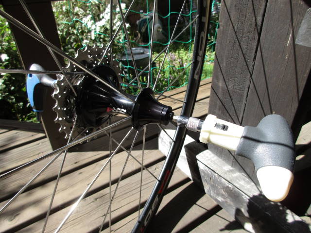 後輪を車体から外して、クイックを抜いたところ。