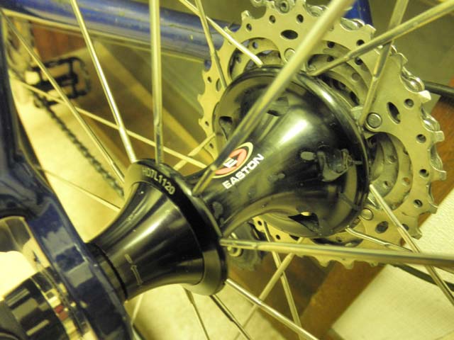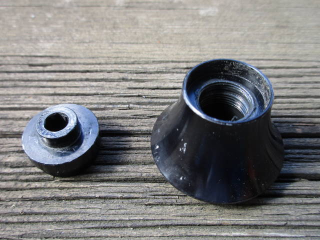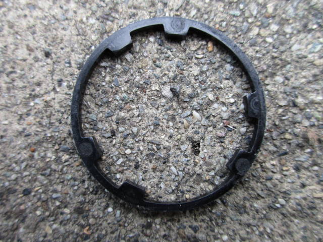 以前から、リアホイールのハブのカバー(↓右の写真のラッパ状のパーツ)に僅かなガタがあり、時々乗る前に手締めしてました。
