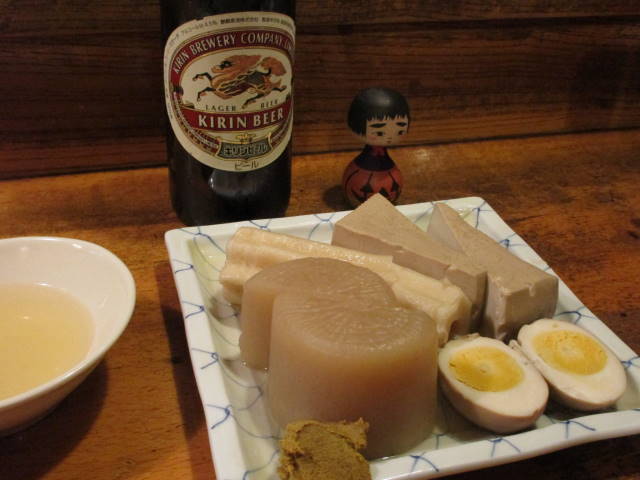 いつものように、おでんとソフトアタリメとネギマで、ラガービールとハイボールをグビグビ。