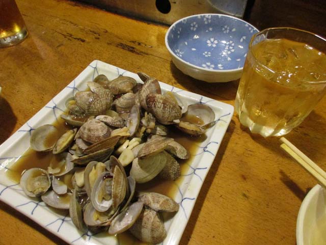 今日はお約束のソフトアタリメとネギマはやめて、アサリ炒めをオーダー。