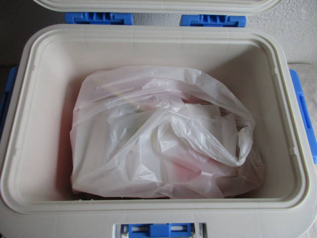 そこで用意したのが、ダイソーで売ってる湯タンポと、ホームセンターで購入した激安クーラーボックス。