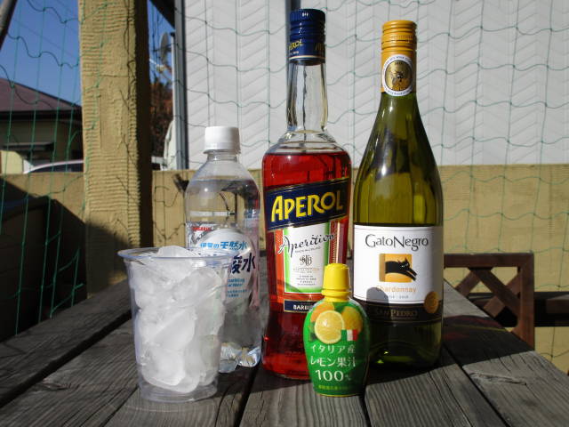 アペロール+白ワインに少し炭酸を入れて、レモン果汁を少々。