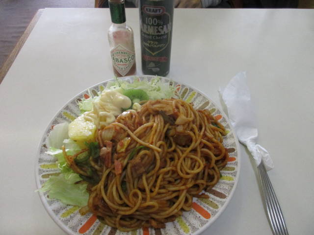 スパゲティとミックスサンド@どちらも550円、プリンアラモード@600円とコーヒーで、計2100円。