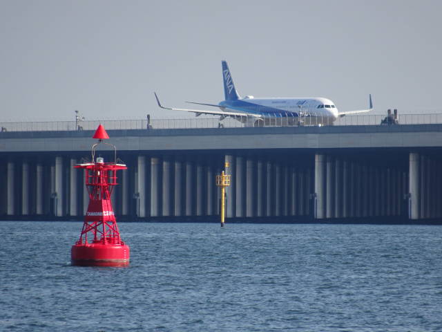 南風時に、22への着陸が見られる「城南島海浜公園」に比べると、迫力が・・・。