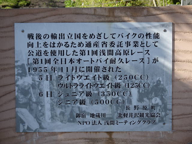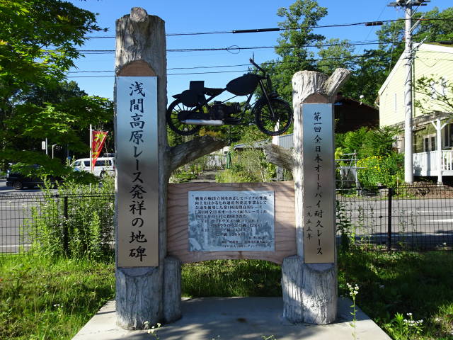コンビニの駐車場の片隅にあるのが、この「浅間高原レース発祥の地碑」。