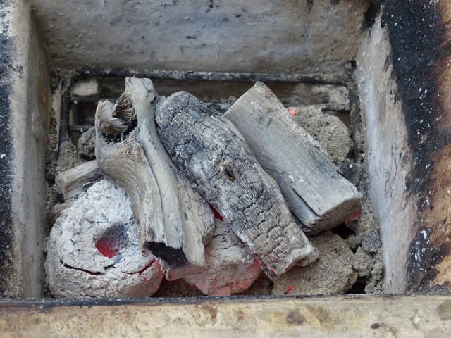 戻ったら炭熾こし。