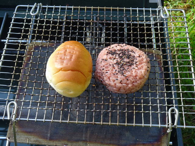 昼食は、トーストと焼きおにぎり。