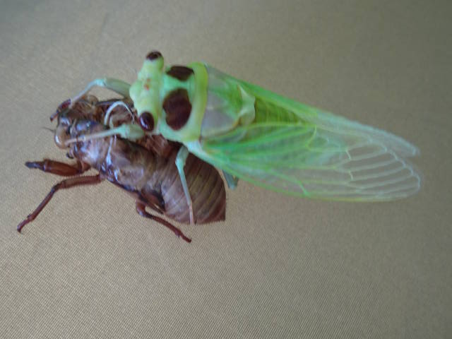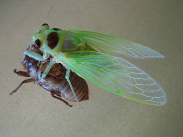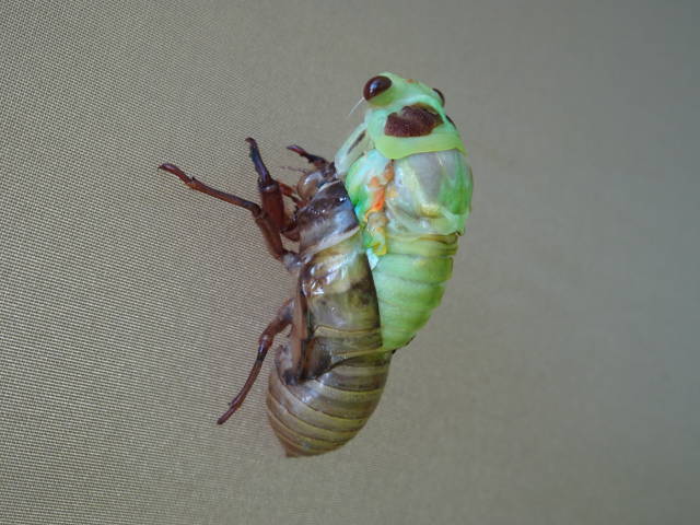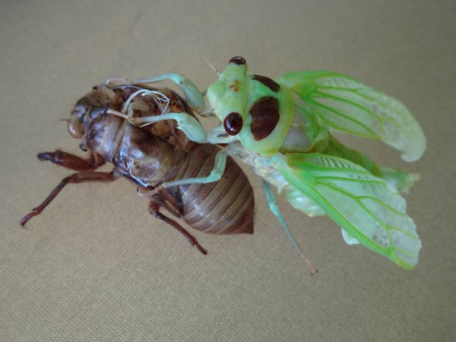 テレビ等で、羽化する様子を早回しにした映像を見たことあるけど、実際に見たのは初めて。