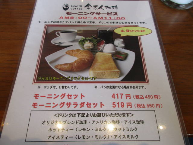 モーニングが、サラダなしなら税込みで450円。
