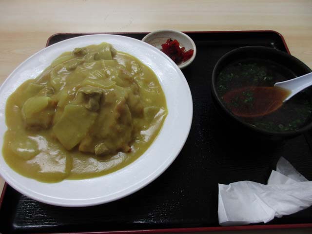 今年5月に行った、「万代シティバスセンター」内の、「名物 万代そば」で食べたカレーと同じくらい黄色いです。