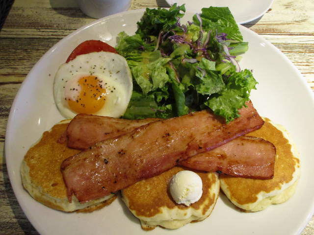 σ(^^)はホットコナブレンド@486円と、ベーコンパンケーキ@1058円。