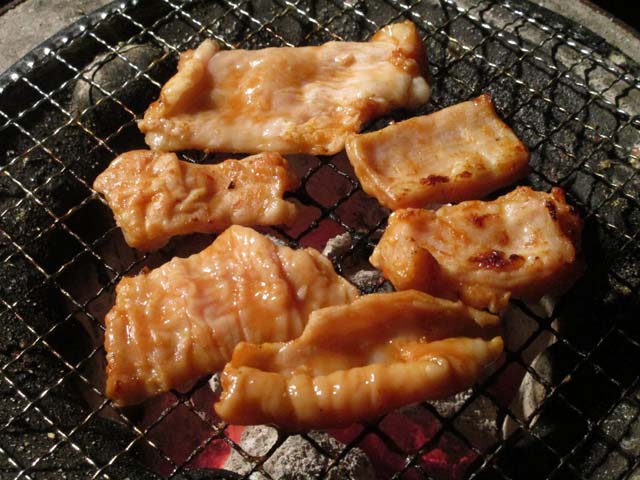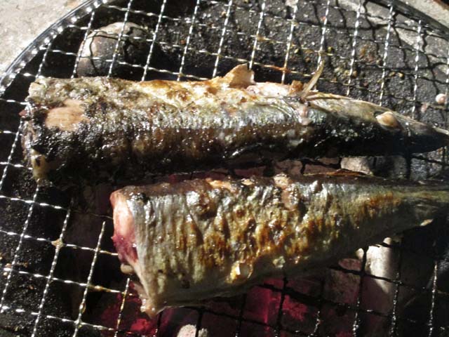 豚スペアリブとホルモン、鶏セセリ、牛レバーとミノ、最後にサンマ。