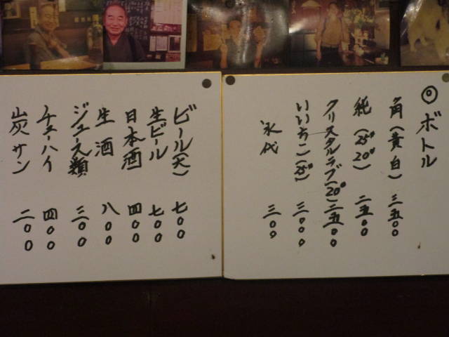 仕入れ値が高騰した肴と、ご飯類がメニューから消えてました。
