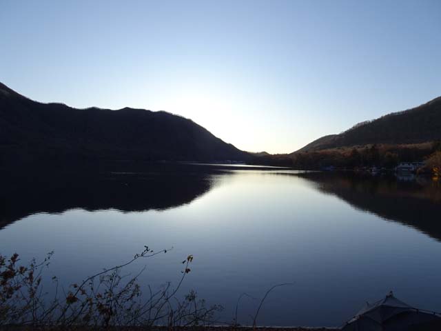 キャンパーに加えて、湖畔の民家や旅館の灯りのせい?