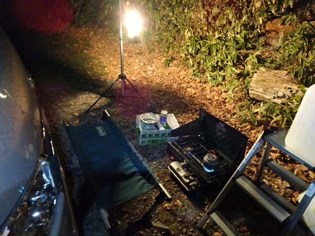 前回同様、装備は前日に積み込んで、食材は当日の昼休みに買い出しておいて、終業後に会社から直接現地へ。