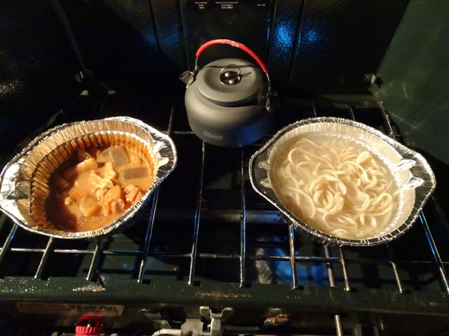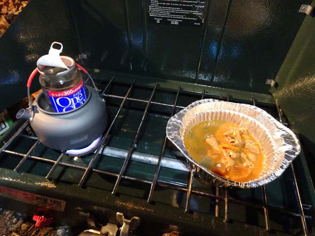 ボンベをシュラフの中に入れておいたので、ストーブは問題なく着火。