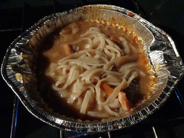 食材は、レトルトの煮込みと〆のうどん。