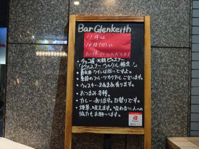 そこで久しぶりに金曜の夜、ひとりで「バー・グレンキース」へ行ってきました。