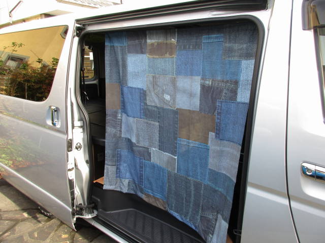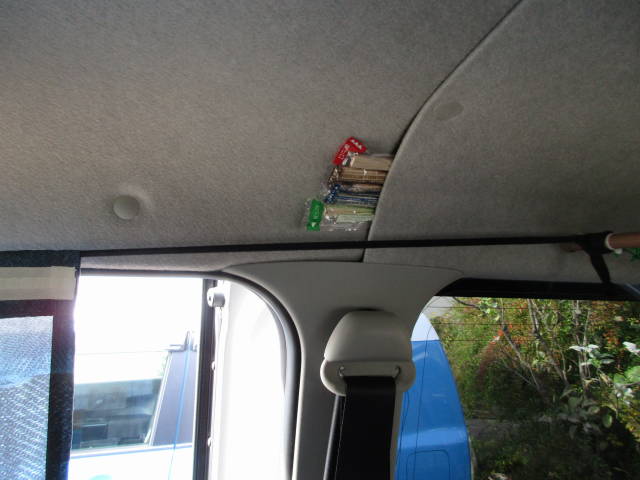 車中泊時に、スライドドアを開けても中が見えないように、カーテンを吊ることに。