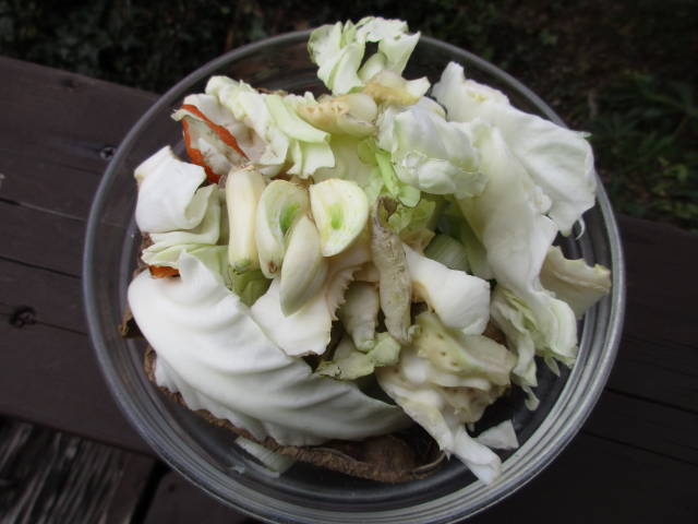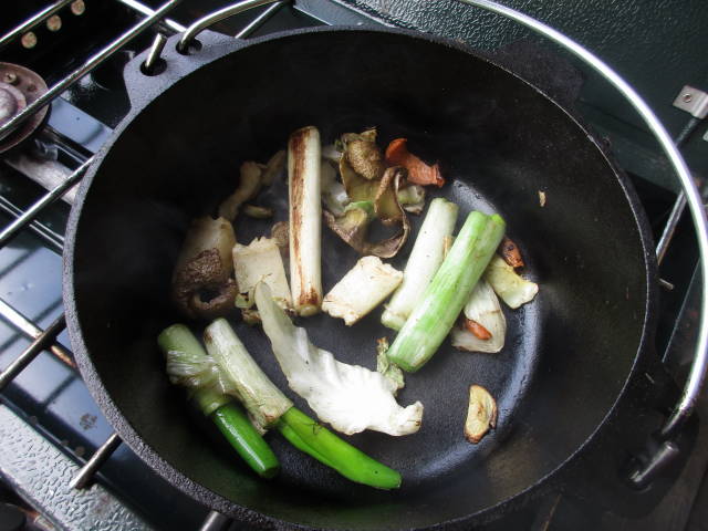 最後に、鍋と蓋の内側を軽くニンニクで擦って、クズ野菜を炒めて鉄の臭いを飛ばしたら終了。