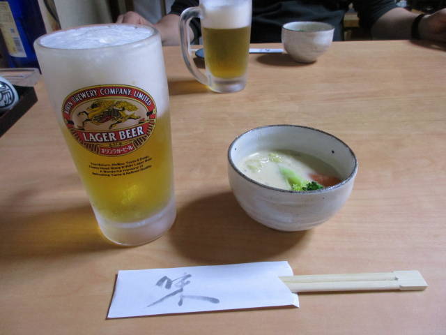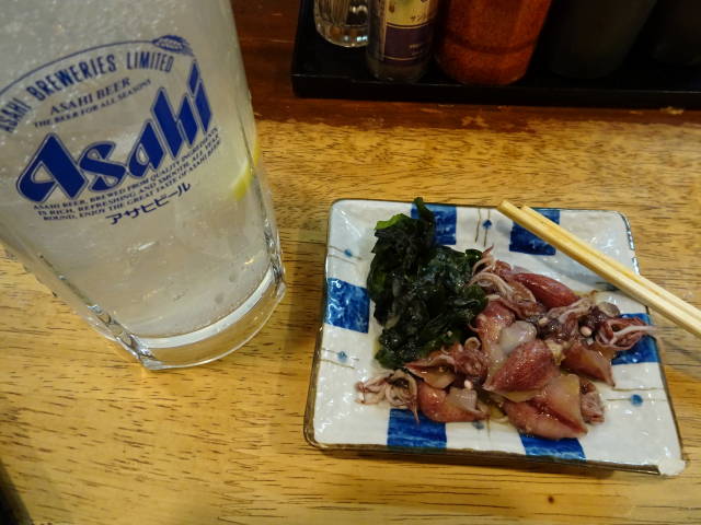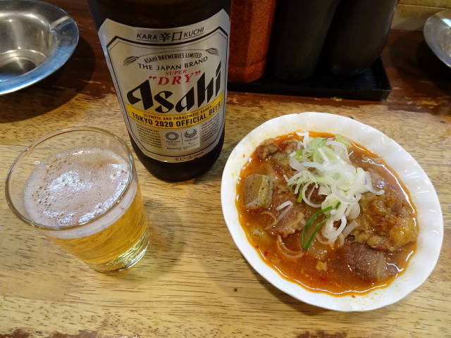 瓶ビールと牛煮込み、レモンハイとホタルイカで、計1310円也。