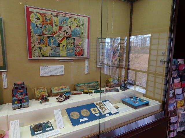 手に取って遊べる物や、当時のおもちゃが展示されてます。