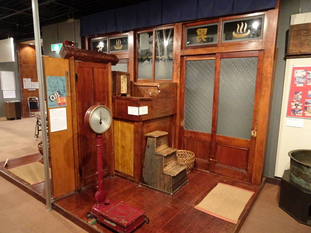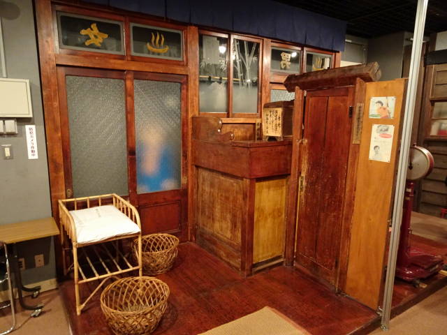 台東区内の銭湯で使われていた、銭湯の入口と番台。