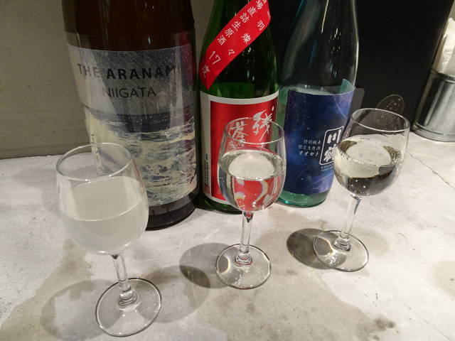 辛口の日本酒と芋焼酎を飲んで、フルーティーな日本酒にチェンジ。
