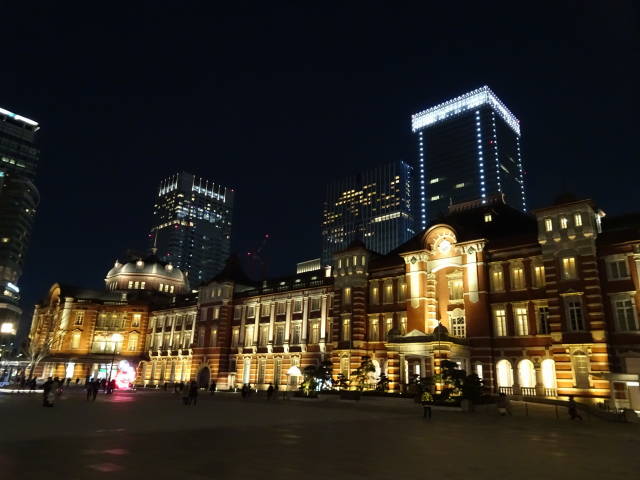 日曜日だったので、背景のオフィスビルの照明が少なく、ちょっと寂しい感じだったけど、東京駅がその分きれいに撮れたかな。