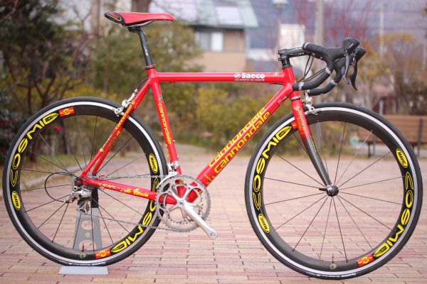 チッポリーニが乗っていたバイクはキャノンデールで、ホイールがマビック、所属チームはサエコ。