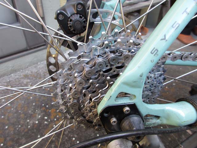 チェーンとプーリーの汚れも取って、最後にシフトを調整。