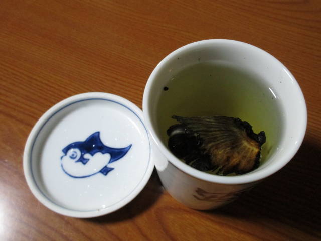 冷酒×2、ふぐひれ酒×2、下戸のカミさんはウーロン茶。