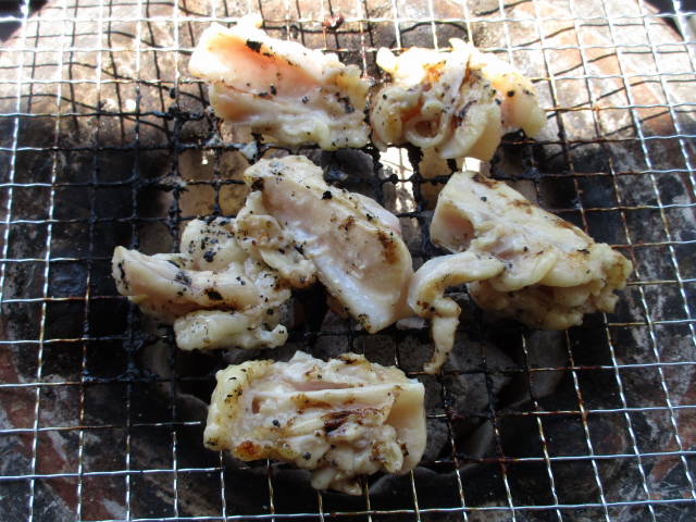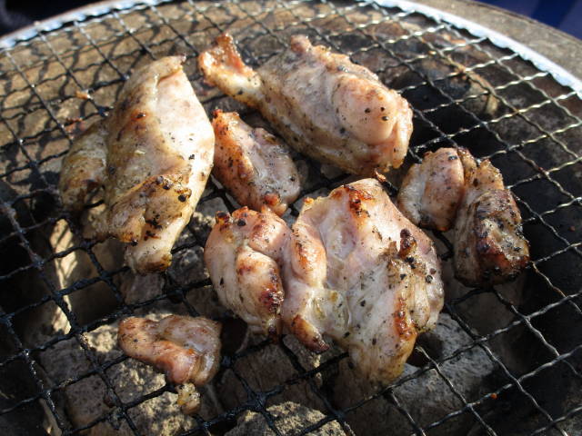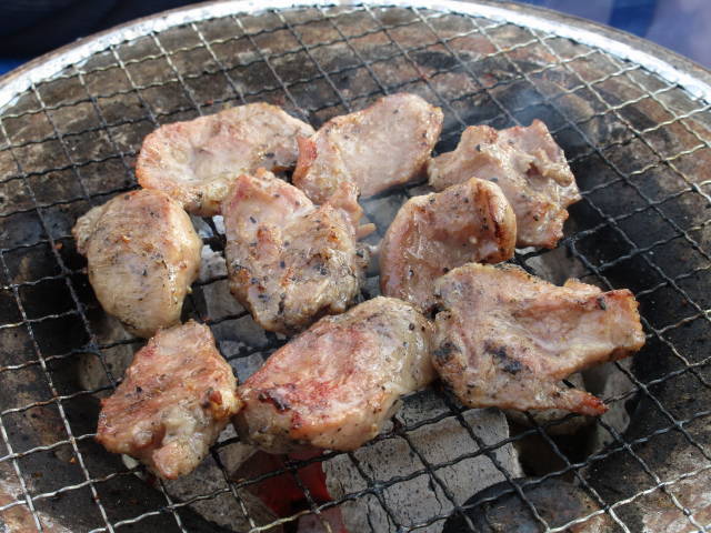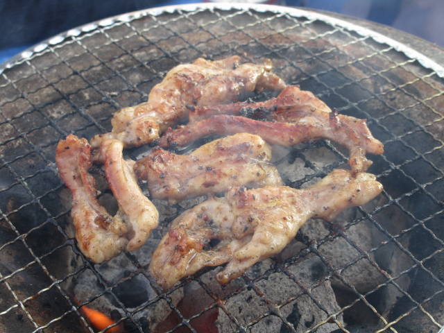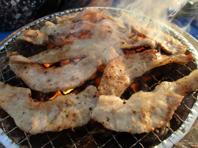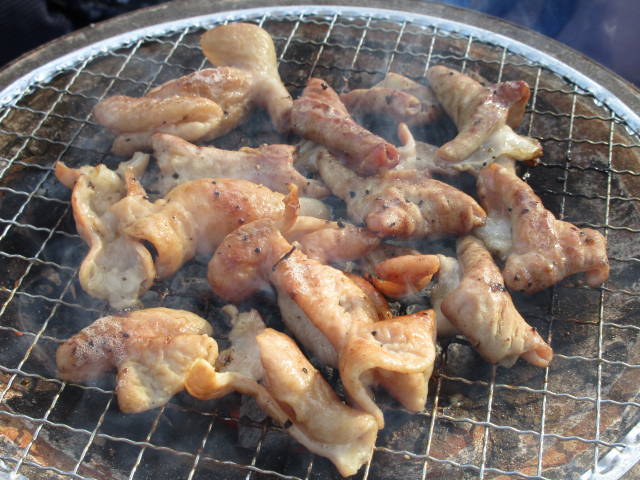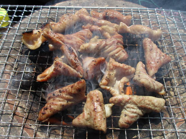 お約束の、七輪で焼肉。
