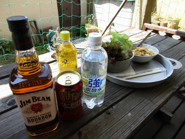 キャンプ用のフライパンが原因? でも水餃子+焼餃子÷2って感じで、味は見た目よりも良く、ハイボールが進んだ!(笑)