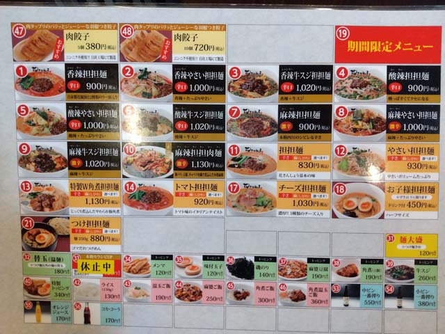 お約束の、麻辣牛スジ担担麺@1020円と、ライス@130円を発注。