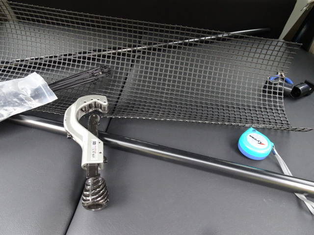 サイドバーに引き続き、こちらもイレクターパイプとトリカルネットで自作。