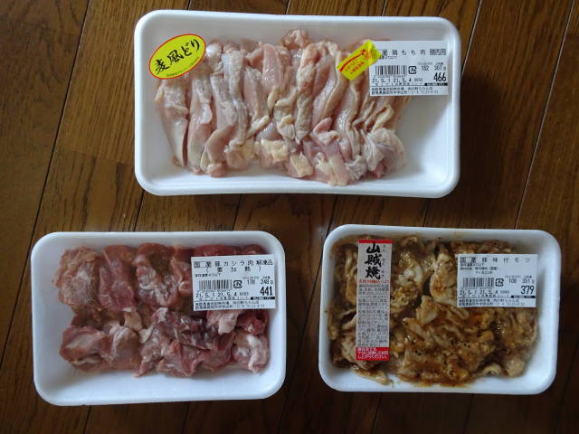 食材は、「ららん藤岡」の「肉の駅」で買った、豚カシラと鶏肉とホルモン、計1000円強。