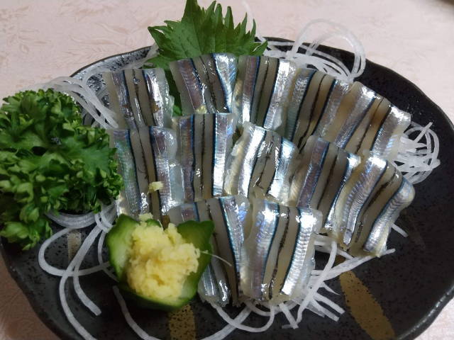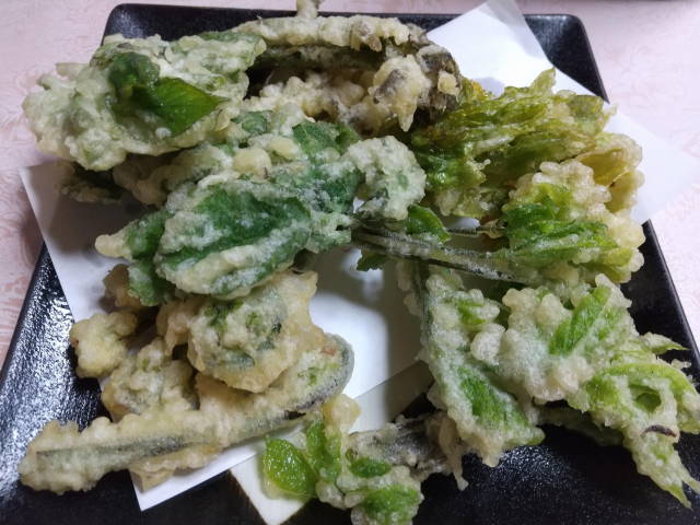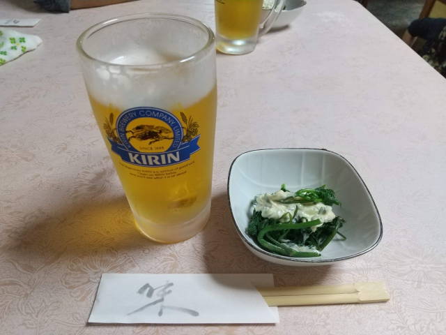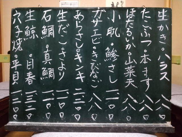 きびなご、生鯨、山菜天、ガサエビ、あらさし、他に水餃子と厚焼き玉子、〆に蕎麦。