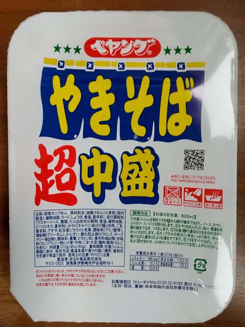 ペヤングの、やきそば超中盛@190円。