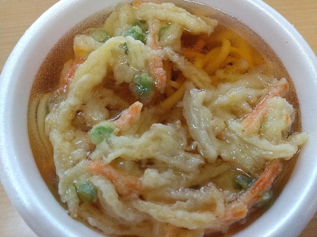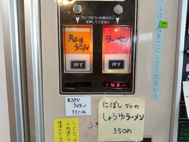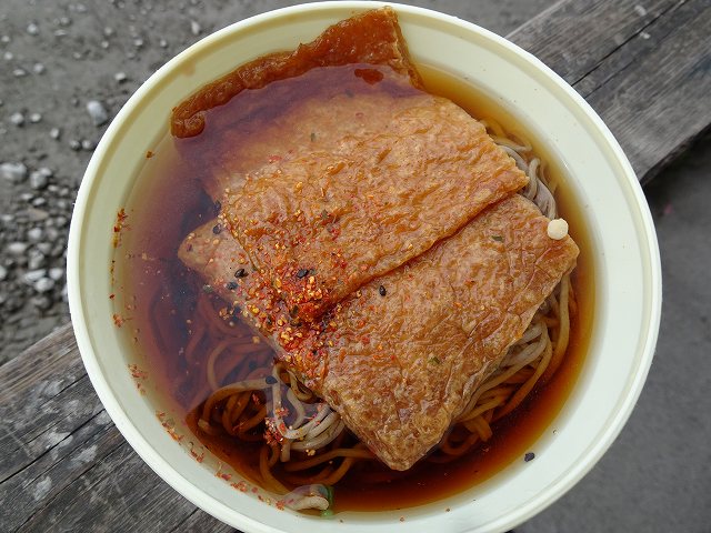 天ぷらうどんの自販機はよく見るけど、きつねそばは珍しいと思って食べてみたけど、これは売れていないらしく、麺はボソボソで汁も煮詰まっちゃってるって感じ。
