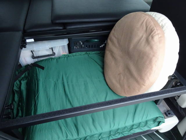そこで、ベッドマットを外して、フルフラットになった2列目シートの上に直接座ることに。