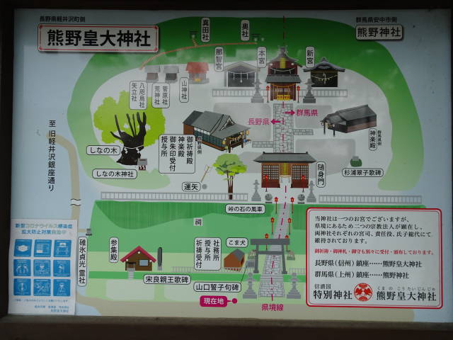 調べたら、「1つの神社でありながら2つの宗教法人がけんざいし、長野県熊野皇大神社と群馬県熊野神社に分かれております。