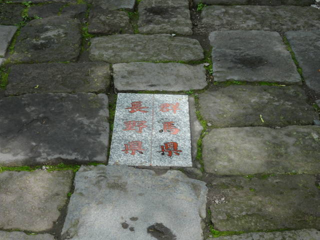 石段の中央が県境。