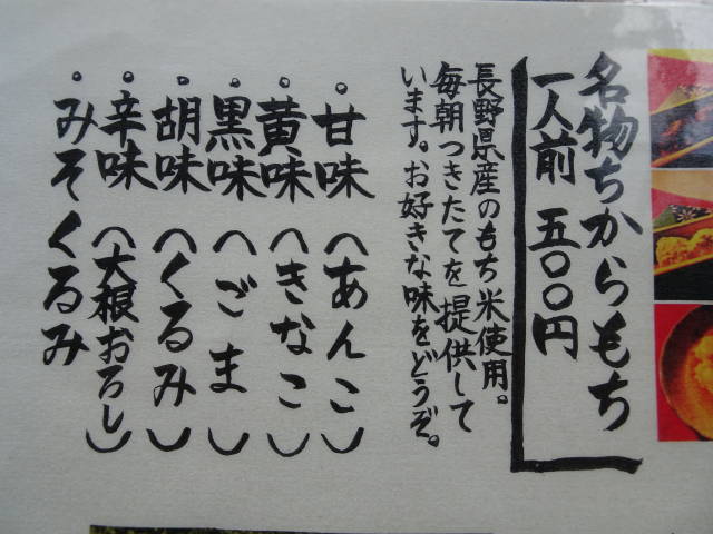 辛味(大根おろし)と、胡桃(くるみ)を発注、どちらも美味。