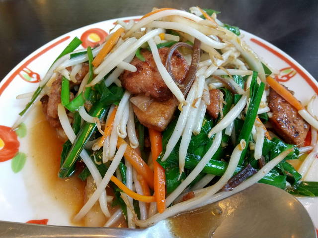 ニラレバ炒めの量は、一般的な店の2倍くらい、味も◎。